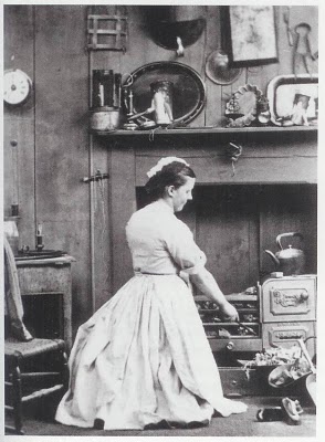 Domestic labour is seldom seen in Victorian art, though photography picked it up, particularly the fascinating if bizarre work of Arthur Munby, here photographing his future wife Hannah Cullwick as a scullery maid.