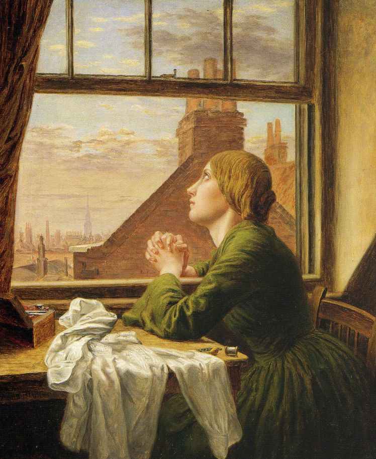 Popular literature was full of stories of a happy, healthy and virtuous young woman leaveing her home in the countryside to become a seamstress in the big city where she encounters an evil employer and/or seducer, and begins an irreversible decline leading to death and/or prostitution.