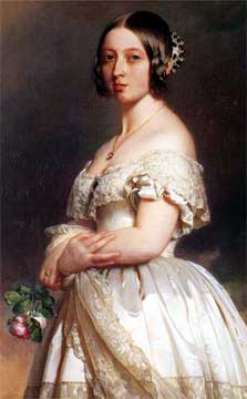 "The most approved Bridal costume for young ladies is of white silk, high corsage, a long wide veil of white tulle reaching to the feet, a wreath of maiden-blush roses with orange blossoms. The orange blossoms are only suitable for the ceremony."