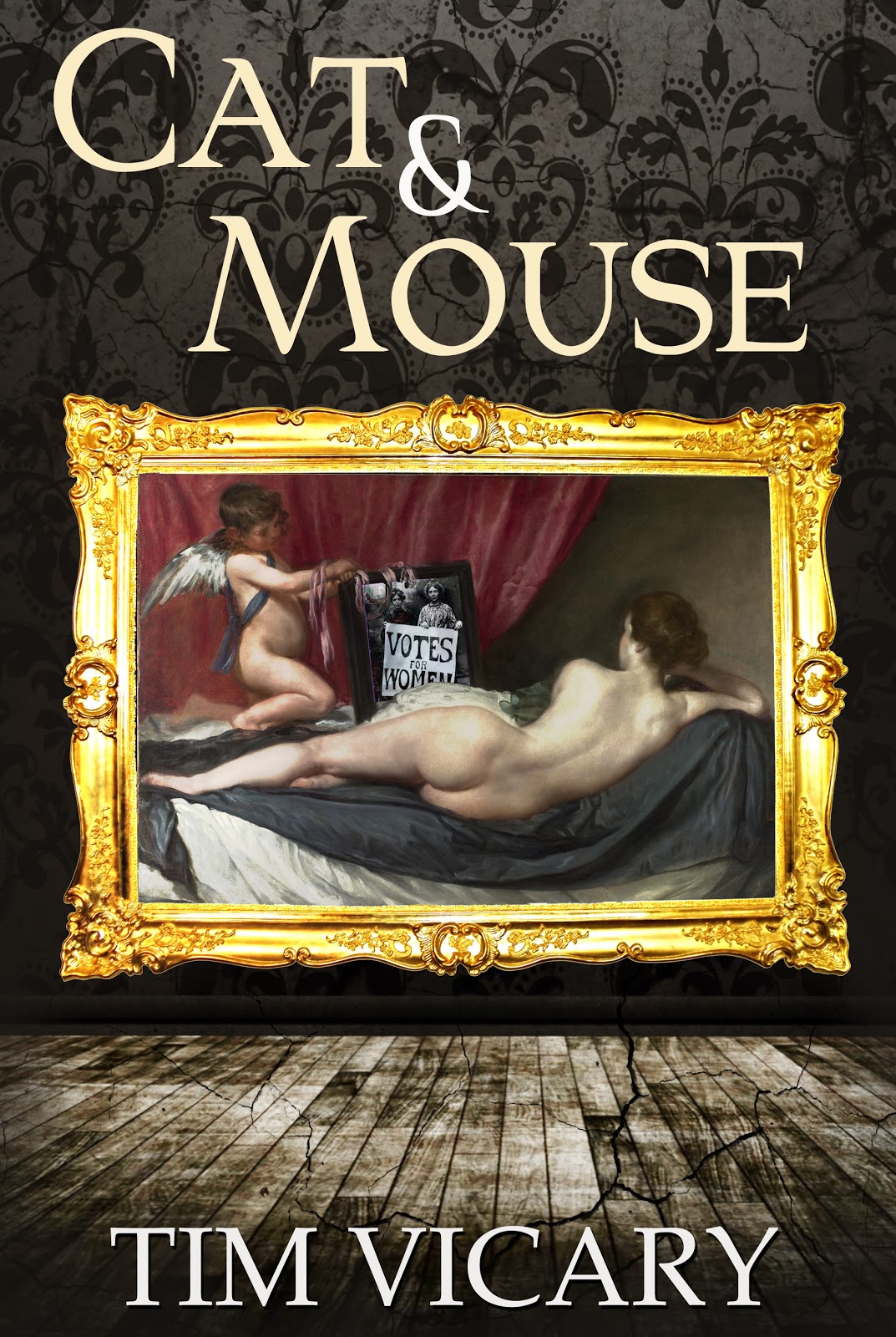 Questions like these led me to write my book, Catand Mouse, which begins with my heroine Sarah Becket committing the same act that Mary Richardson did. Sarah Becket is not meant to be Mary Richardson; I’ve just borrowed the action, nothing else. In every other way Sarah Becket and her sister are fictitious characters, but they are living in the same time, through the same sort of political and sexual conflicts as real suffragettes did, which makes the story interesting, I hope. And for the new cover of the book, I’ve borrowed the picture of the Rokeby Venus, with one crucial difference, as you see.
