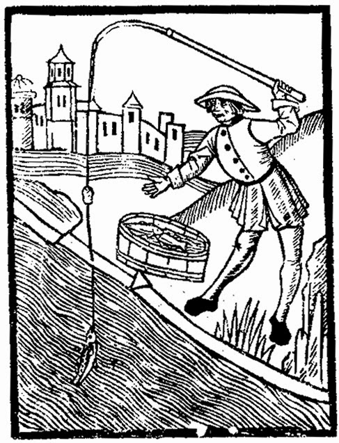 | Successful line fishing, from the Boke (sic) of St Albans. Equipment and technique could not have changed much between the 9th and the 15th century. |