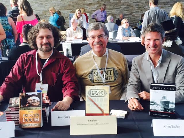 The first presentation made was to the winner of the M.M. Bennetts Award for Historical Fiction. This first time award honors and memorializes Ms. Bennetts with the goal of making her exceptional work better known. Soon after publication of her novels May 1812 and Of Honest Fame, she became ill with what was to take her life. Her publisher turned the books back to her, and in promoting them on her own she became a friend to us here at the English Historical Fiction Authors blog. M.M. was an editor of our blog's anthology, Castles, Customs, and Kings: True Tales by English Historical Fiction Authors. The idea for an award began with another friend, Terry Kroenig, and we were able to carry it forward. Anna Belfrage presented the award to Greg Taylor for his novel, Lusitania R.E.X.! See Greg's biography. Other finalists were David Blixt and Steve Wiegenstein.