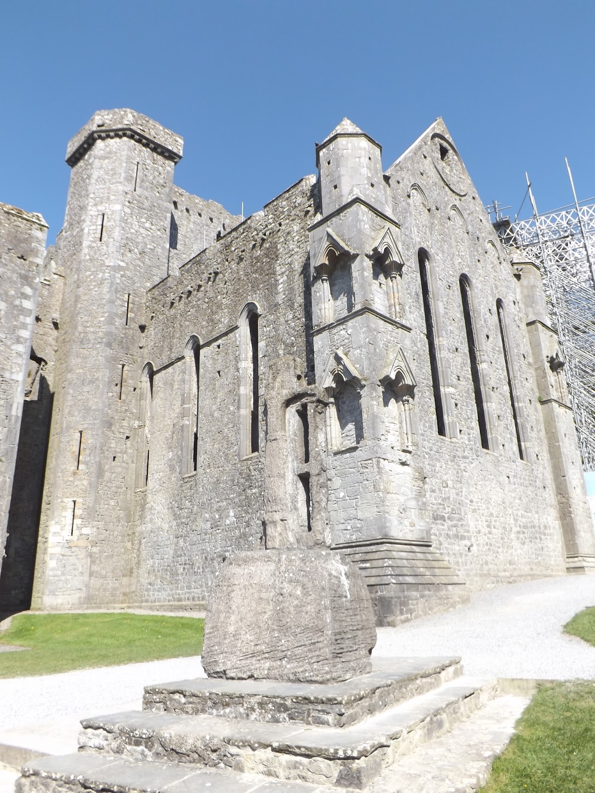 Next oldest is Cormac’s Chapel, built by a King of Desmond (part of Munster) and consecrated in 1134. It is the first example of Romanesque architecture in Ireland. It is Cormac's Chapel that is currently shrouded in scaffolding. Its stone roof has had to endure almost 900 years of Irish rain (and that's a lot of rain), and an urgent conservation project is under way. Basically, it's being dried out and I was told that's likely to be a seven year job in total.