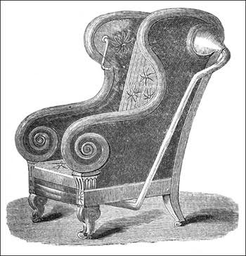 As shown in the picture of Curtis's acoustical chair, on the near side of the chair was the barrel for sound, and, attached to the barrel was the conductor. To convey the sound, a tunnel was placed beneath the chair, and within the chair was the tube applied to the ear. To complete the chair and convey sounds, another conductor and mouthpiece were also required for the speaker.