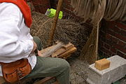 | Breaking flax: wooden tools for this task were found at Must Farm. Photo: Pymous (licensed under GNU). |