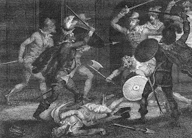 | Public Doman Art ((US)) - Anonymous drawing of the death of Robert Catesby, Wikimedea Commons |