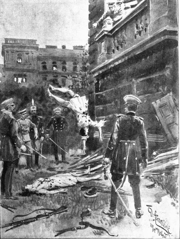 Alarmed by this, Colonel Dragutin Dimitriević, (Apis) the head of Royal Serbian Military Intelligence, stepped up plans for their assassination. On June 10th 1903, while Draga and Alexander dined with courtiers and members of Draga’s family at the Old Palace in Belgrade, conspirators surrounded the houses of the Prime Minister and senior officers loyal to king, including several officers of the Royal Guard. The palace guard unlocked the gates at 2.00 am, and a small band of army officers led by Apis entered the palace, killing two of Draga’s sisters and most of the court.